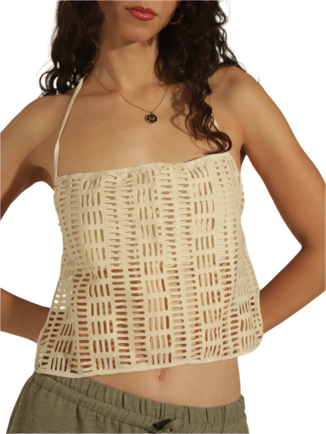 Clean lines meet intricate texture in the Barecode Top. Crafted from soft beige cotton gipure, this standout piece features a sharp square-cut neckline and a daring open back for a balance of structure and sensuality. The contrast between minimalist design and detailed lace creates a visual tension that turns heads — refined by day, bold by night.