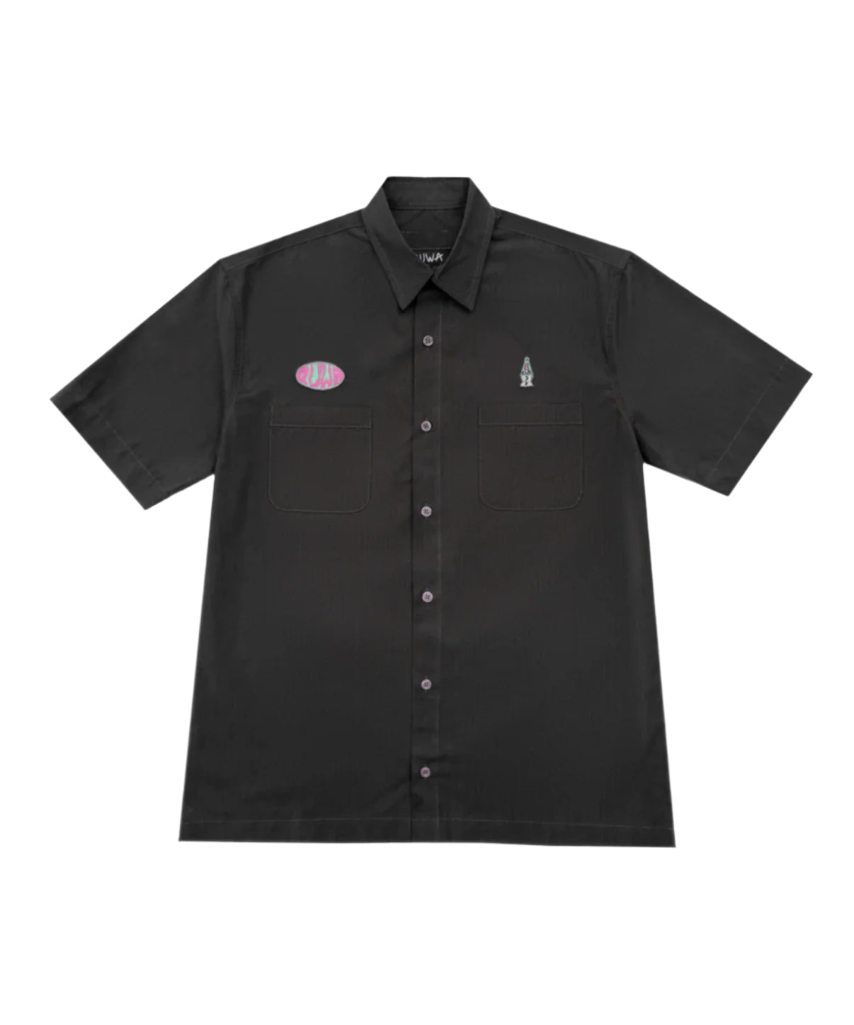 DARK GREY/CHARCOAL SHORT SLEEV SHIRT WITH SUBTLE PINSTRIPE